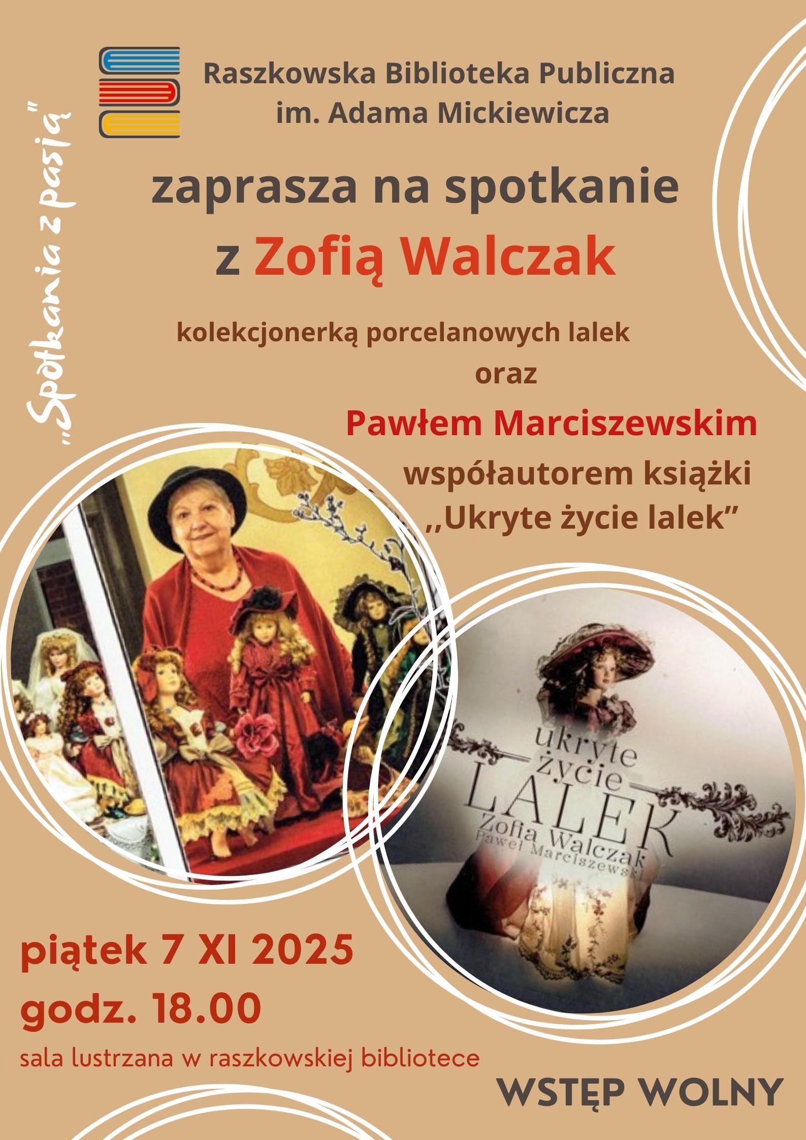 Raszkowska Biblioteka Publiczna zaprasza na spotkanie z Zofią Walczak - kolekcjonerką porcelanowych lalek oraz Pawłem Marciszewskim - współautorem książki ,,Ukryte życie lalek".